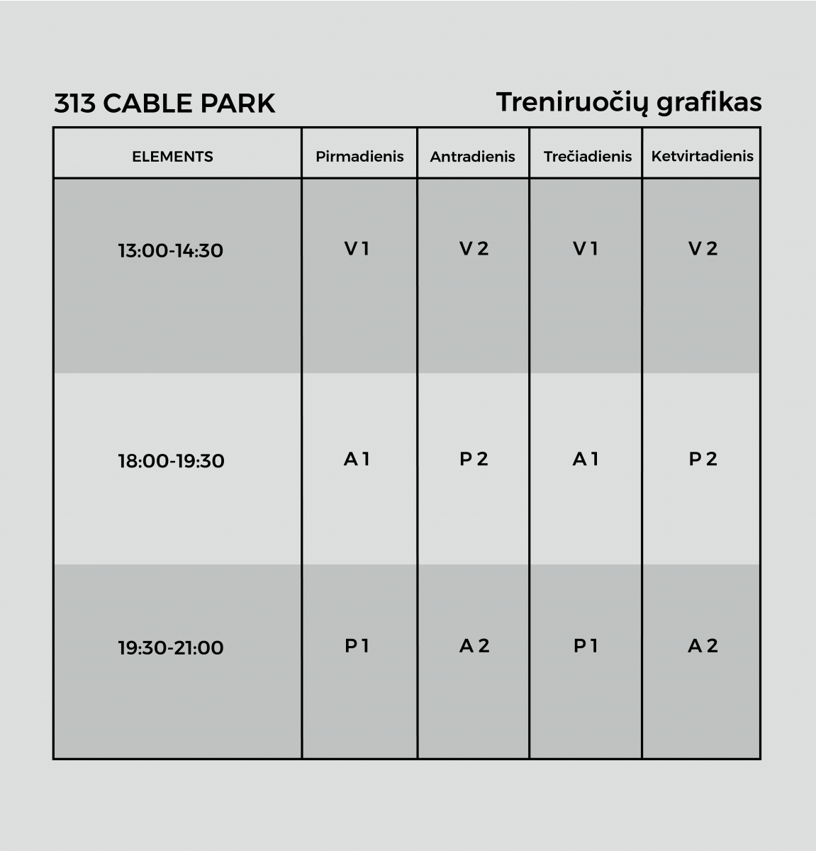 313 cable park organizuojame grupines Cable College ELEMENTS treniruotes skirtas visiems norintiems tobulėti nuosekliai ir kryptingai. Treniruotės vyksta grupėse iki 10 žmonių, du kartus per savaitę.